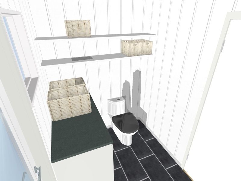 Plassen over berederen kan da benyttes til hyller for vaskemidler . Jeg tror at mange undervurderer dette rommet når de skal bygge hus og innser i ettertid at dette også er et. Så fint badet ble og lurt å kle inn varmtvannsberederen. Tror ikke jeg kopierer dette i vår nåværende kjeller, men på det nye vaskerommet vårt skal varmtvannsbrederen definitivt bygges inn!